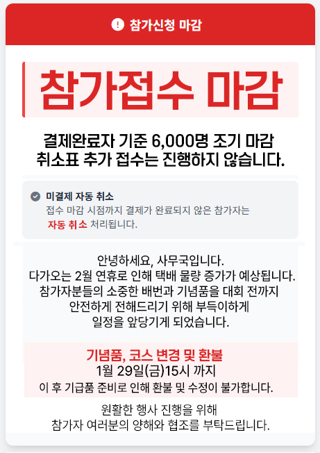 Á¢¼ö¸¶°¨ ÀÌÈÄ¿¡´Â Âü°¡Ãë¼Ò ¹× ȯºÒÀÌ ÀÏü ºÒ°¡´ÉÇÕ´Ï´Ù.